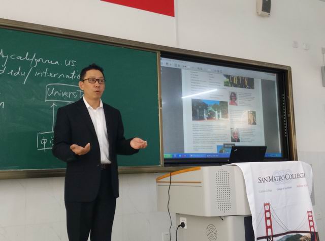 2015年4月28日,加州高校联盟主席、圣马特奥社区大学总院副院长栾晶博士来访烟台二中国际部。国际部高一、高二部分师生学生参加了讲座。