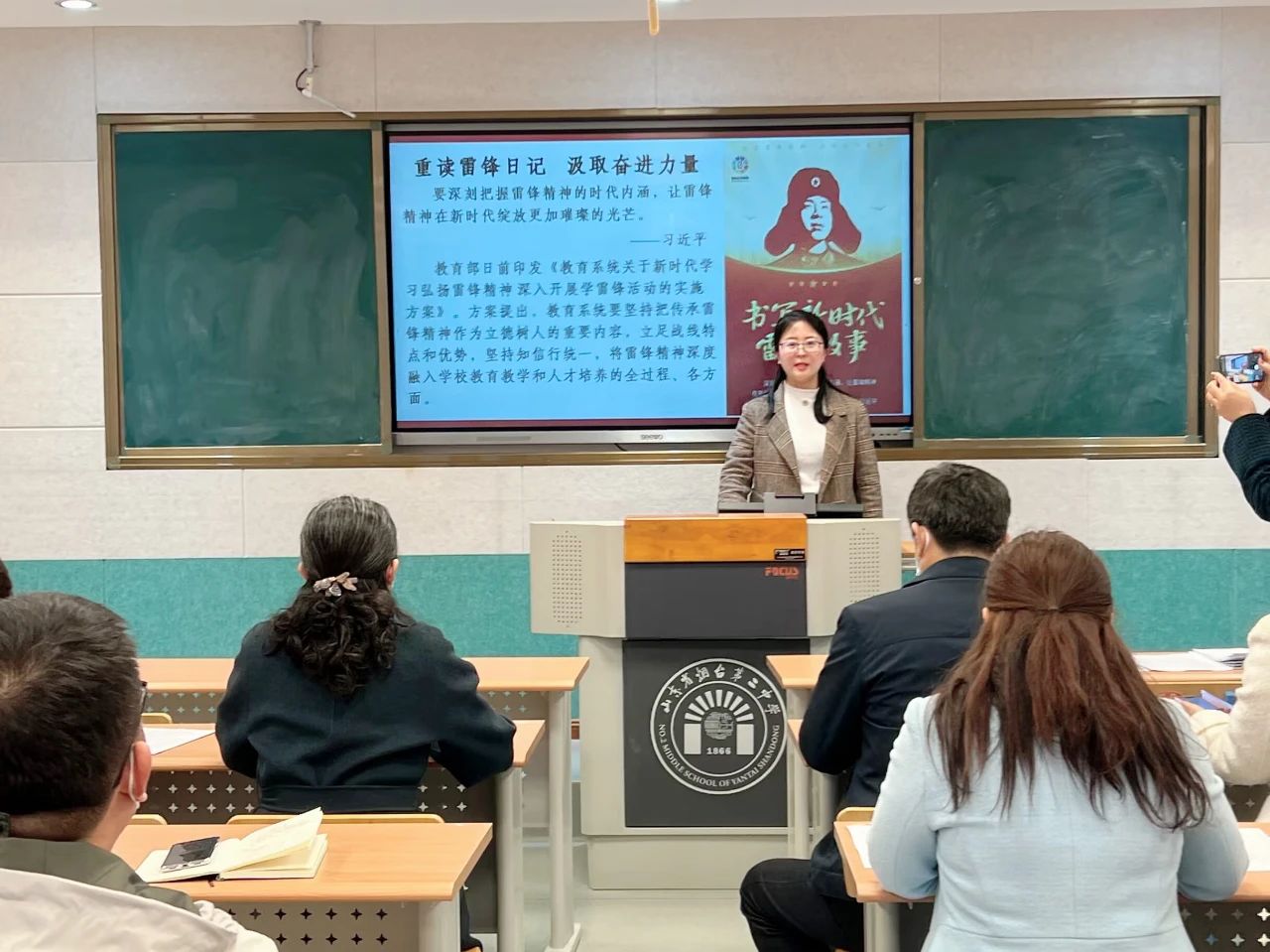 今年是毛泽东等老一辈革命家为雷锋同志题词60周年,为深刻把握雷锋精神的时代内涵,发挥党员干部模范带头作用,让学雷锋活动融入日常、化作经常,根据学校党委统一安排部署,莱山校区党支部组织全体党员扎实开展3月份主题党日活动。会议由支部组织委员姜妍主持。
